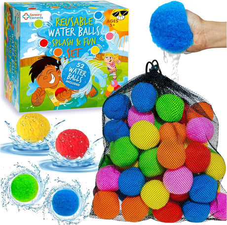 Reusable Water Balls Splash & Fun Set - Set Complet cu 52 de Bile Colorate din Bumbac Reutilizabile, Perfect pentru Joaca de Vară în Apă, Piscină sau Curte