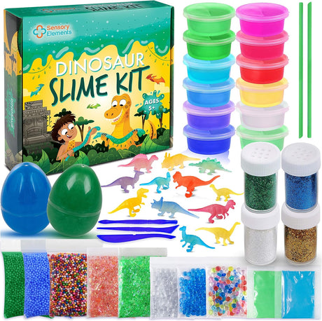 Dinosaur Slime Kit pentru Băieți și Fetițe – 12 Slime-uri Colorate, Dinozauri Fosforescenți, Pudră cu Sclipici și Accesorii Diverse, Cadoul Ideal